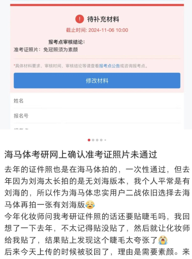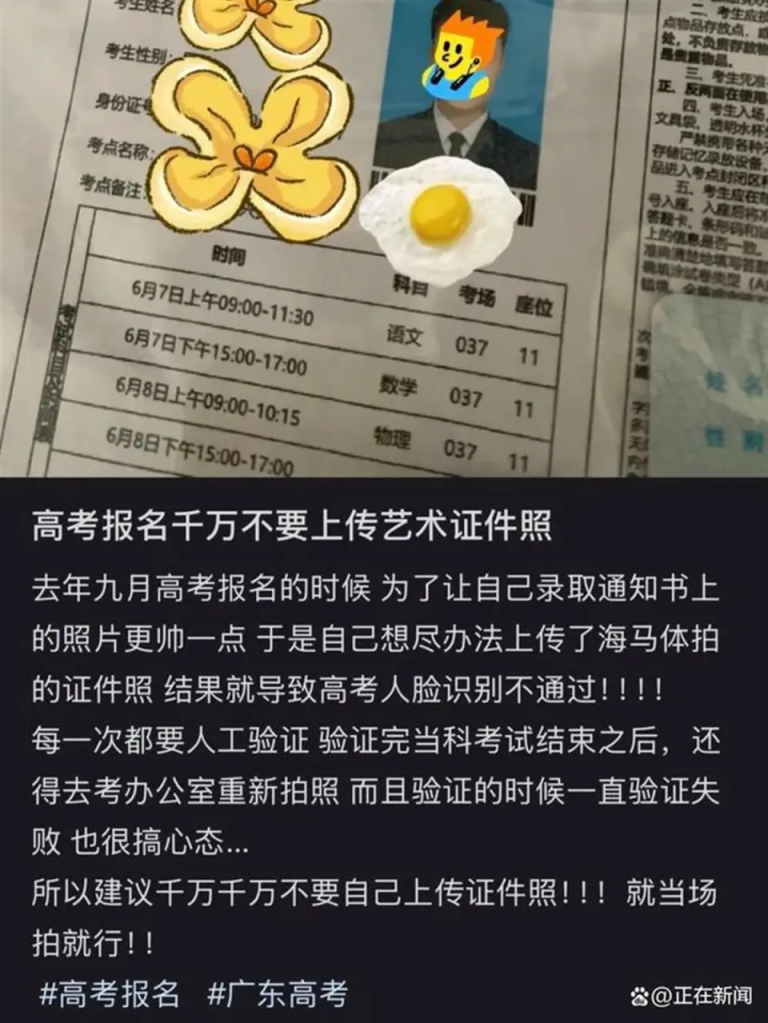 近日,有网友发文称2025年考研网上报名系统中,辽宁抚顺招考办报考点退却使用海马体相片当作准验证相片。