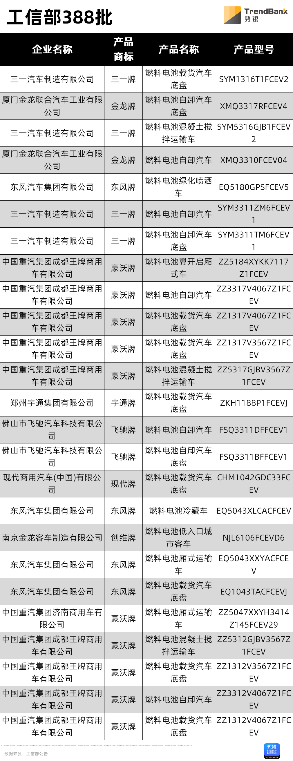 近日,工信部发布了《说念路纯真车辆坐蓐企业及产物》(第388批)的公告。据统计,在本次公告中燃料电板产物共8户企业25款型号,上榜率约为64%,上榜数目为本年各批次之最。